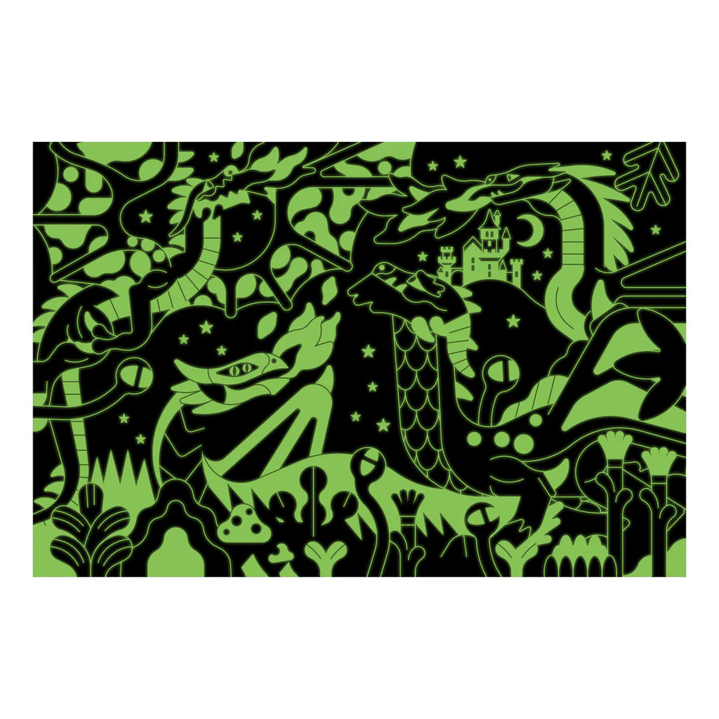 Piece together a colorful fantasy scene with Mudpuppy’s Dragons 100 Piece Glow in the Dark Puzzle. Turn out the lights to see magic come alive! This 100 piece puzzle features bold and eye catching artwork of a mythical dragon, but in the dark see the fire-breathing surprise glow!