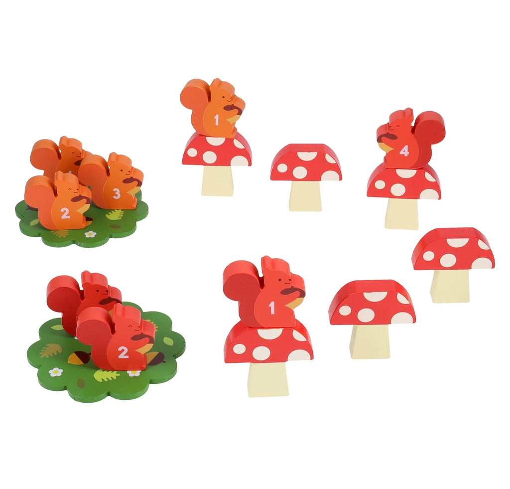 THOUGHTFULLY DESIGNED – Inside the box, which is made using 75% recycled materials, you’ll find 8 wooden squirrel counters, 6 wooden mushroom stands, 2 wooden nesting tree bases, and English, Dutch, French, German, Italian, and Spanish instructions, all made using FSC-certified materials.