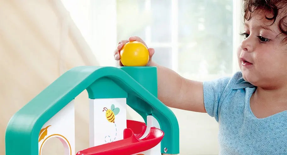 Come and experience the joy of music and rolling fun with our House-shaped Ball Rolling Game. You can navigate through the colorful maze or take out the xylophone board for individual melodic play.