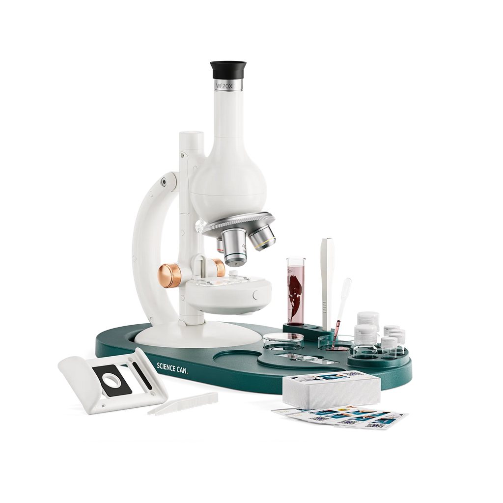 Discover the hidden wonders of the microscopic world with the Science Can 1600x Microscope Lab Edition! Designed for young scientists and beginners, this educational tool offers high-powered magnification ranging from 40x to 1600x, allowing users to explore cells, fibers, and microorganisms in stunning detail. Featuring a bright LED light, a 360° rotating head, and easy magnification switching, this microscope ensures clear and precise observations. The battery-powered design makes it portable for home or classroom use, while the secure sample holderkeeps slides steady for accurate viewing. Plus, the smartphone mount lets you capture and record discoveries, making science more interactive and fun. Perfect for kids aged 8-12, this beginner-friendly microscope fosters curiosity, critical thinking, and hands-on learning! 🔬✨
