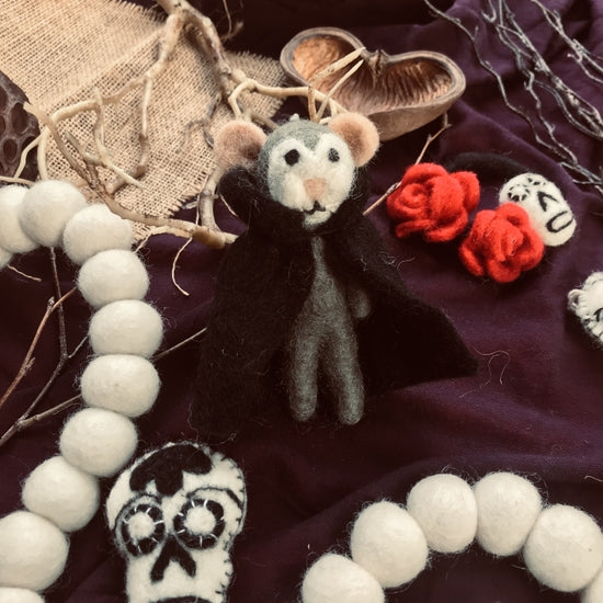 Dimensions 9cm x 11.5cm Materials Wool Handmade Victor the Vampire Biodergadable Hanging Halloween Decoration