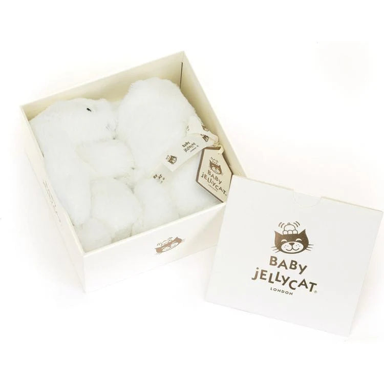 Bashful Luxe Bunny Rosa Soother is irresistible to touch in our softest latte hued fur. A timeless newborn gift, this lop-eared bunny holds our finest soother: a sumptuous cloud for newborns to doze with. Crafted with stitched eyes and gold thread nose, this soothing bunny is ready to gift in a satin sheen gift box with gold foil detail and matching gift card.