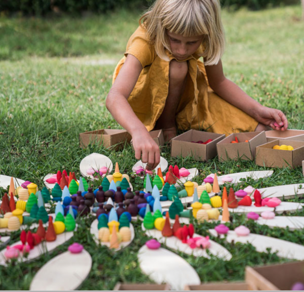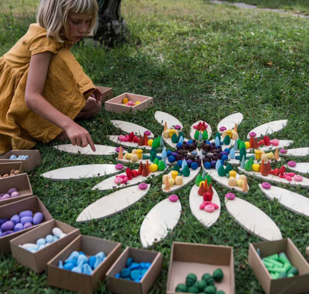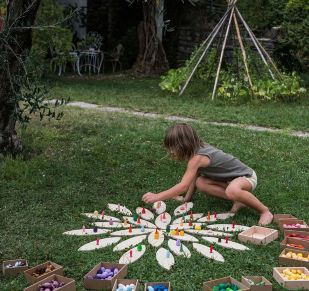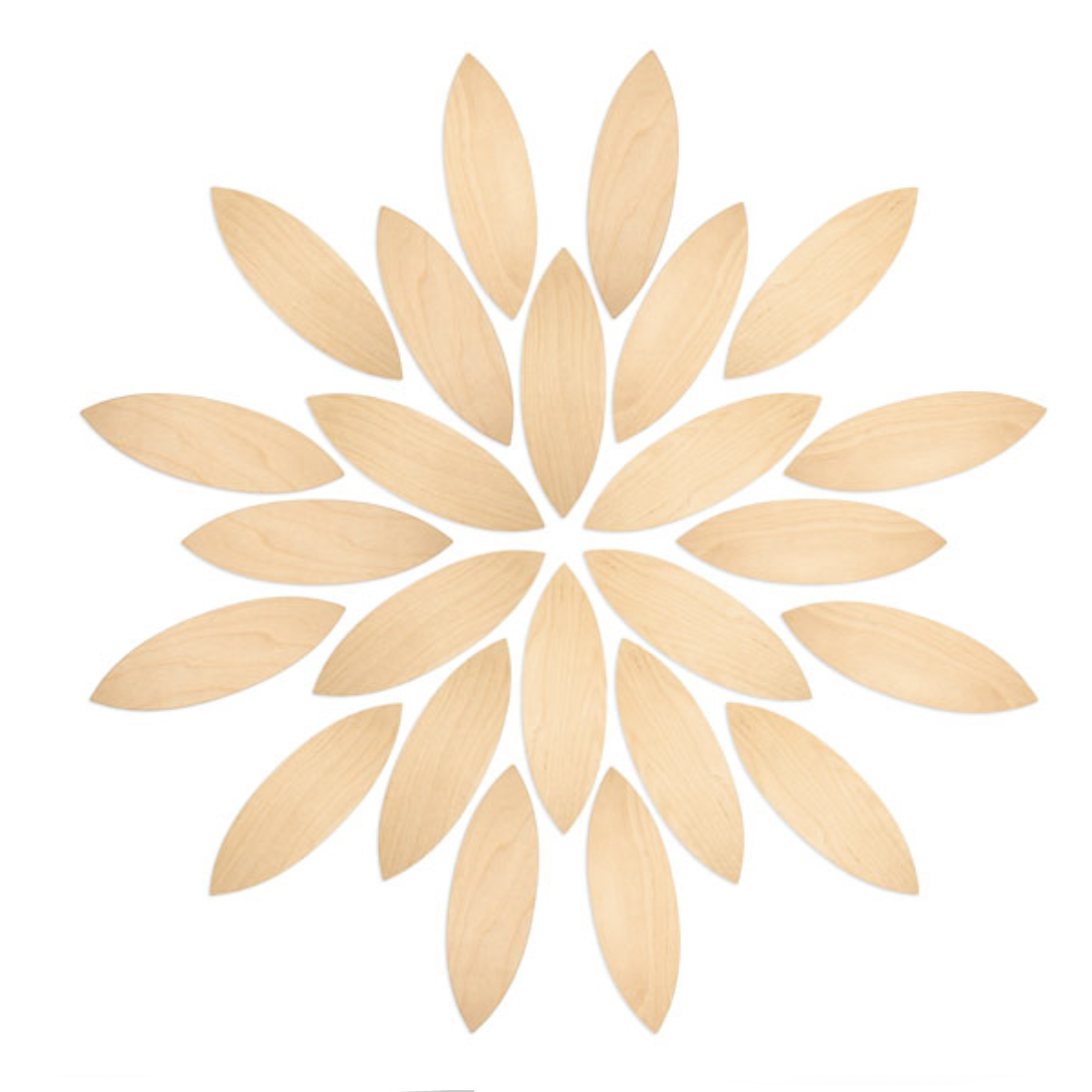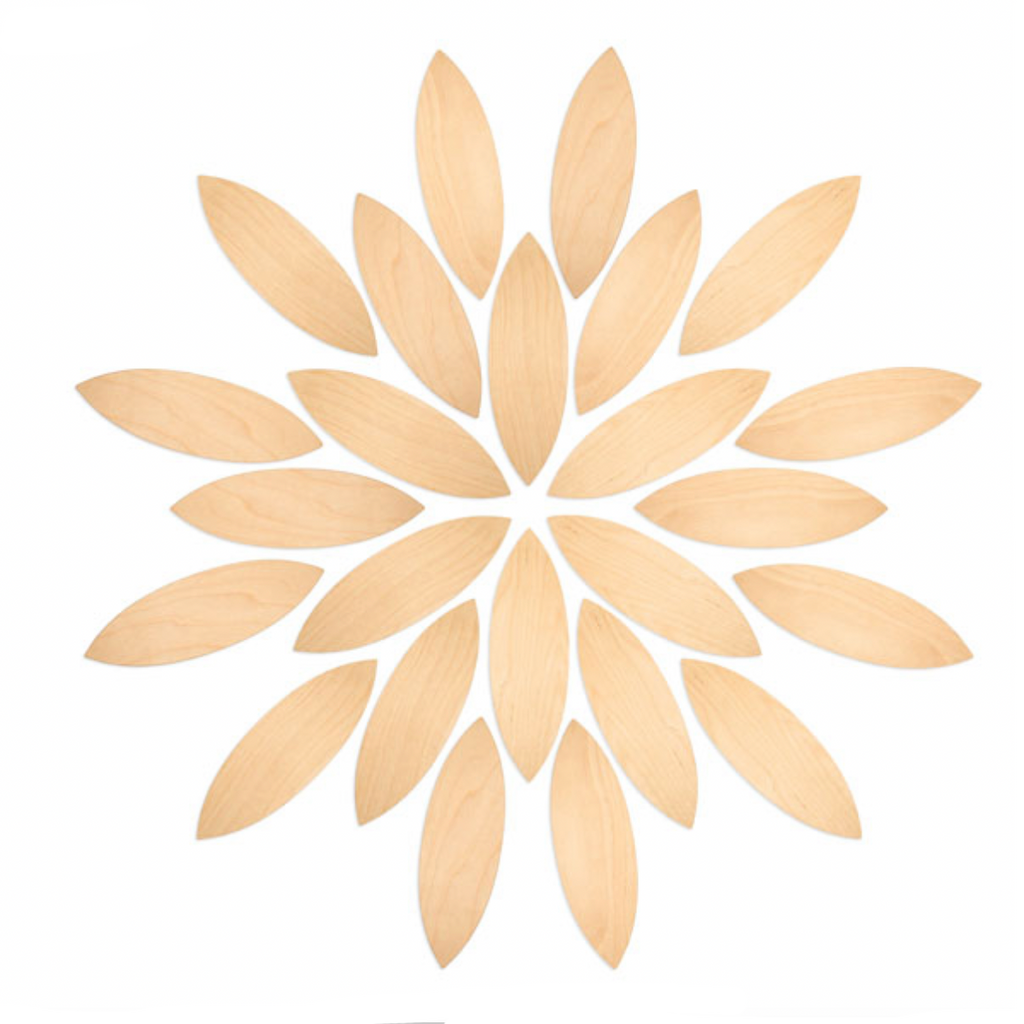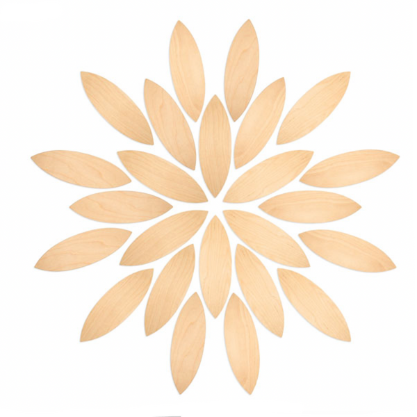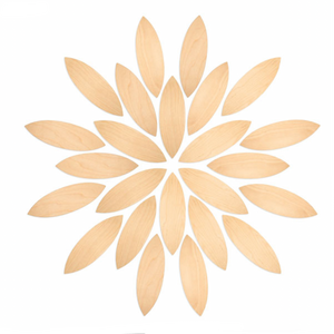 24 flat plywood pieces in the shape of flower petals! Perfect unstructured material that lends itself to different open-ended play activities. They can be used as platforms for free construction play and for arrangements of Mandalas.