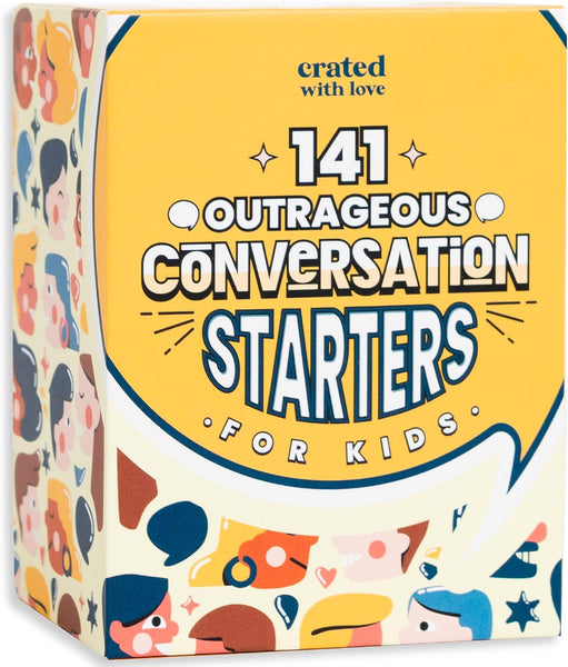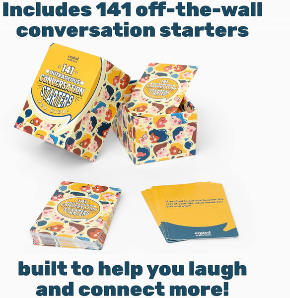• TABLE TOPICS FOR KIDS: Need a break from family board games? Our kids table topics conversation cards include 141 off-the-wall conversation starters built to help you laugh, learn something new, and connect more as a family. This conversation deck is focused on increasing your child’s skills in imagination, creativity, communication, critical thinking, and emotional intelligence - all while laughing and having fun!