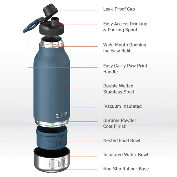- 32-oz. capacity bottle, 7-oz. capacity food bowl, and 9-oz. capacity water bowl