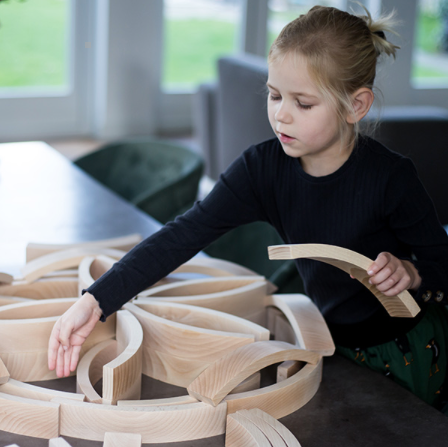 The unique shape and the impressive format of the Abel blocks ensures that everything you build with the Abel blocks immediately looks quite beautiful. Every block is made with love and by hand from a piece of beech wood. Mother Nature has decorated them with a beautiful drawing. Abel Blocks can be greatly used to advance fine motor skills, concentration, perseverance, creativity and fantasy. It is also fantastic game material to teach children to work together.