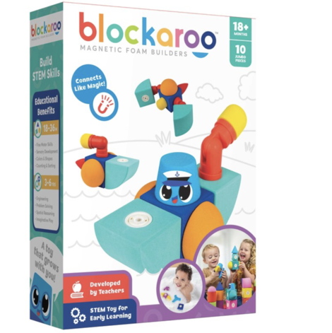 The 10-piece set of manetic foam block pieces will be STEM fun for your 18m+ child to build a tugboat or robot! This toy can even be played with in the bath.