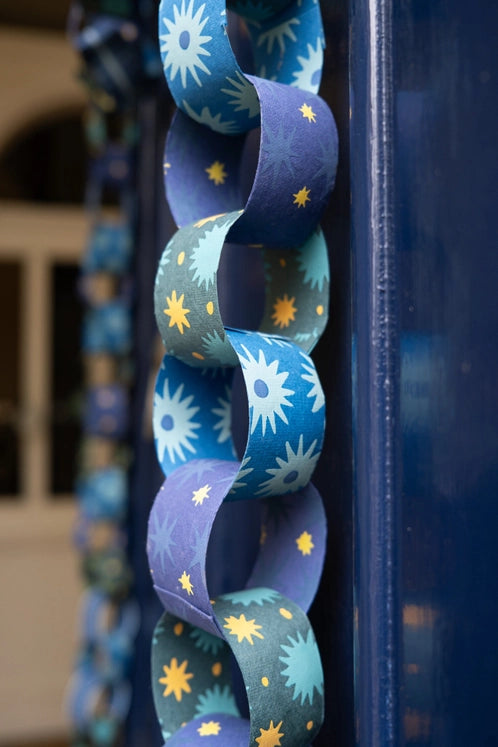 The paper is printed by hand on both sides so your paper chains always look great! Screen printed on both sides by hand talented artisans in Jaipur - Sustainably made from recycled materials