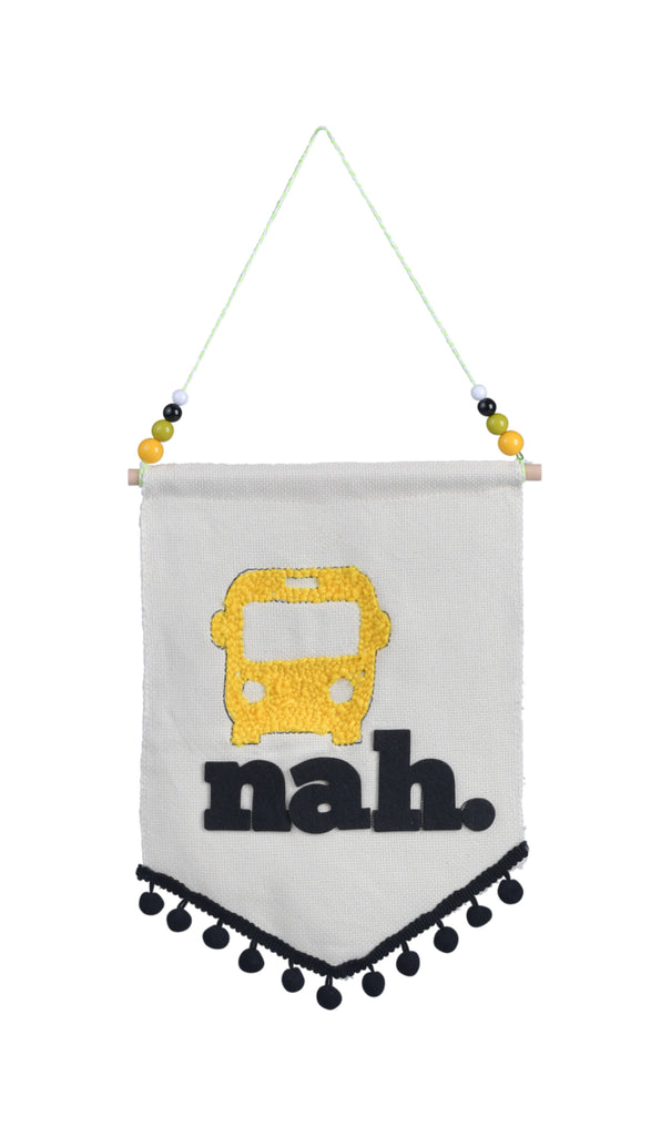 She’ll craft herself a reminder to stand up for what she believes in. Using the punch needle she’ll embroider a bright yellow bus and “nah” onto the canvas. Then it’s time to decorate with the pom-pom fringe and felt stickers. Finally, she’ll attach it to the hanging rod and display it proudly on her wall to prompt her to act like a leader every day.