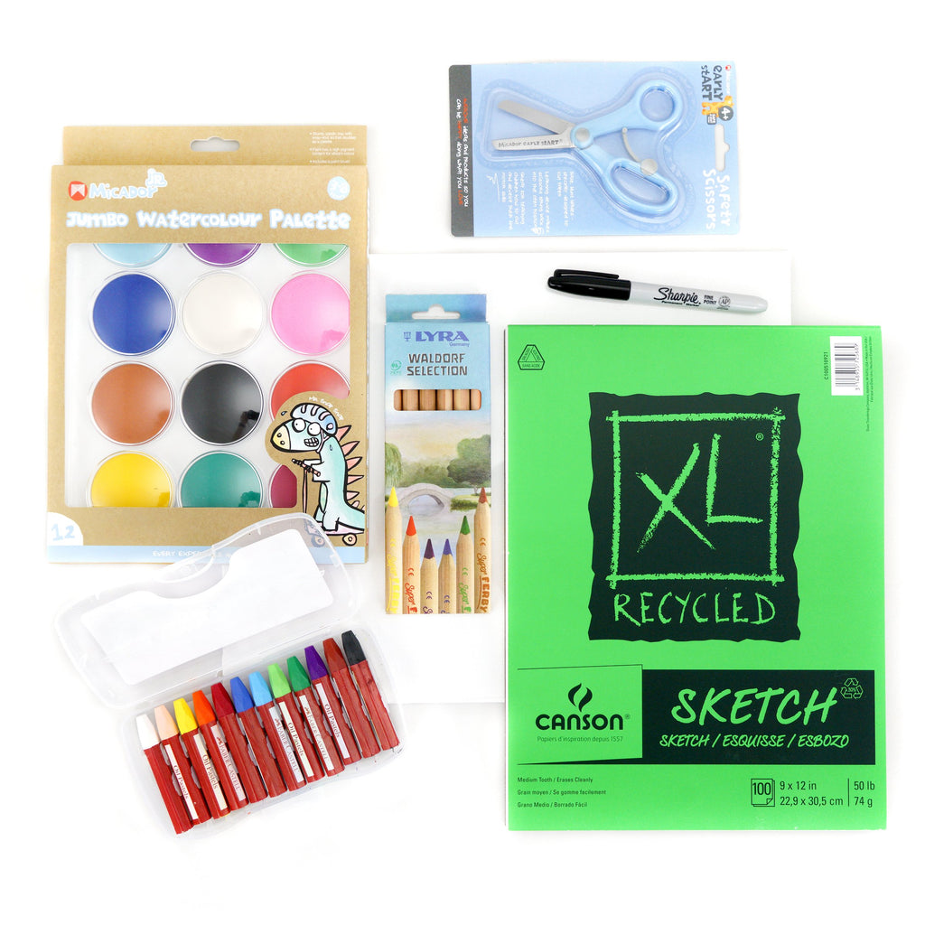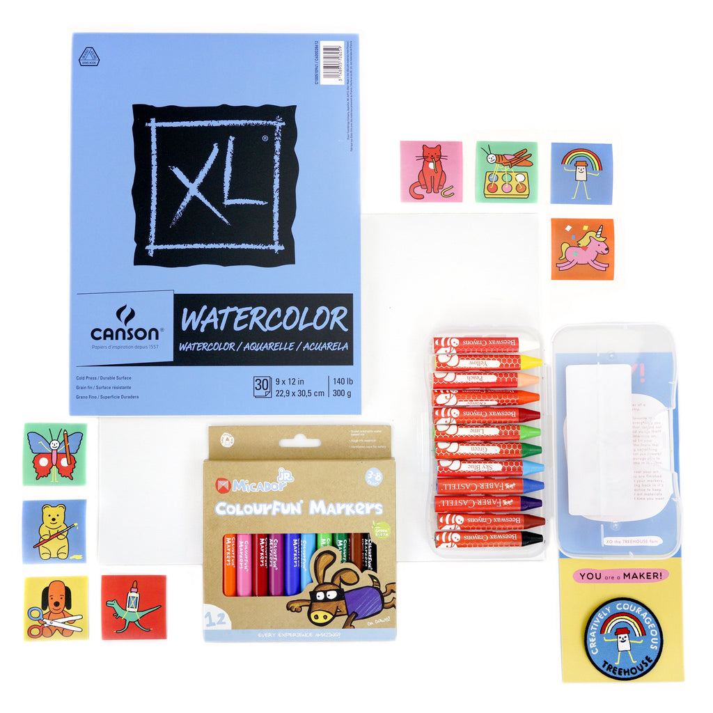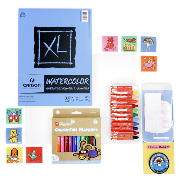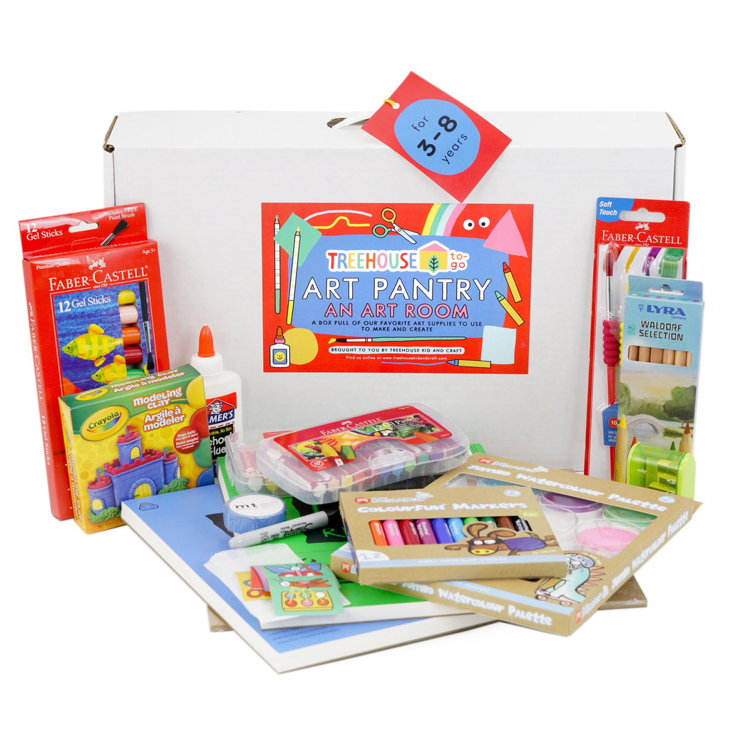 We have put together a suitcase filled with all of our favorite high quality art supplies for ages 3-8 years. We created this bundles during the pandemic when many families were missing TREEHOUSE classes and wanted to continue the act of making at home. This box is a complete Art Studio!