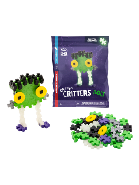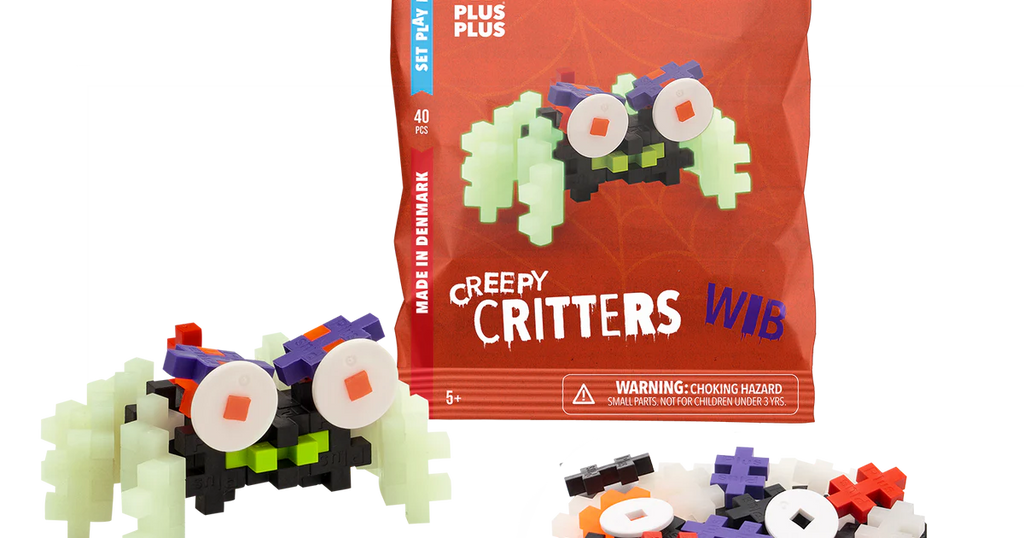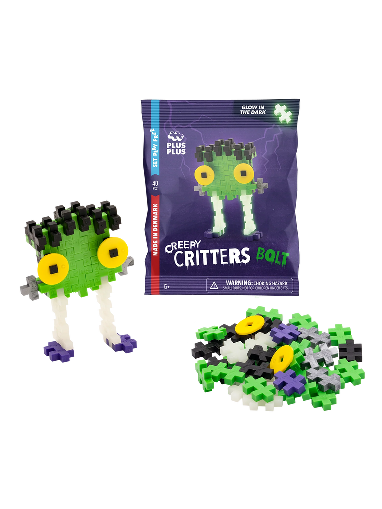 Each bag contains 40 Plus-Plus pieces, including 1 or 2 'eyes' and a variety of bright colors, along with instructions for 1 creepy critter. Collect all four characters and make their tricks your treat!