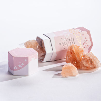 Pink Himalayan salt crystals are known for their healing and therapeutic properties, so these salt crystals may be used in the bath or as home decor. Hexagonal box features contemporary spa-inspired design.