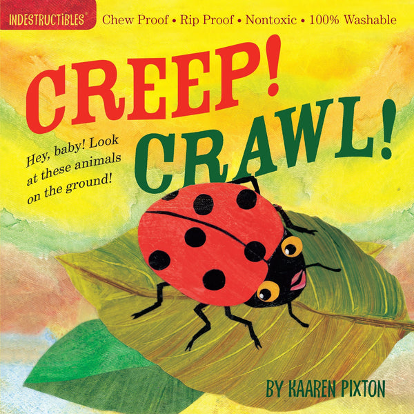 Indestructibles are built for the way babies "read:" with their hands and mouths! Indestructibles won't rip or tear and are 100% washable. They are made to hold, grab, chew, pull, and bend. The pictures are bright and colorful, and there are no words! That way you can make up a new story every time, or just cuddle while you and baby explore!