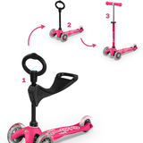 Have you been looking for a scooter that will actually last? We found it! A ride-on kickoard with a toy drawer that slides in and out, so that toddlers can pack up their favorite possessions to take on the ride. For outings where toys are better left at home, the toy drawer is remlovable; From age 2 to 3, when children are ready to stand, the Mini2Go converts to a stand-on scooter with adjustable T-bar. Just remove the seat and drawer for a stand-on scooter with T-bar that extends to grow with your child