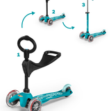 The Mini2Go Deluxe has the same lean-to steering as Micro's other kickboard style products, which children learn intuitively, developing balance and coordination as they go. The non-marking wheels enable it to be used indoors and out.