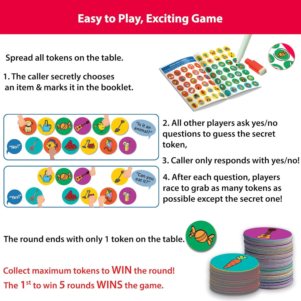 • BOX INCLUDES 100 tokens,1 wipe erasable marker, mystery object booklet, playing guide. Travel-Friendly Fun: Pack it up and bring the fun anywhere! Compact and easy to store, perfect for adventures both big and small