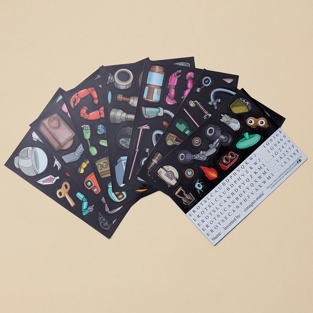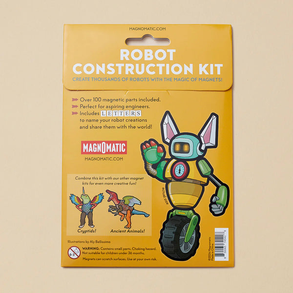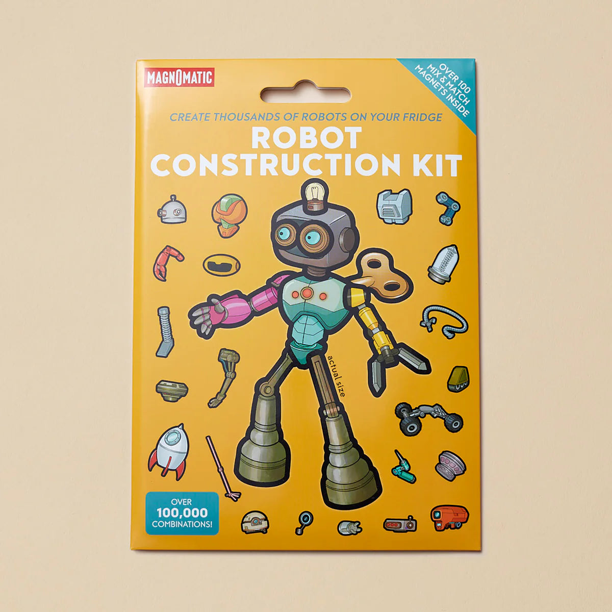 The Robot Construction Kit is the perfect home workshop for your favorite tinkerer. Inside, you'll find over 100 magnetic parts you can use to construct hundreds of thousands of machines on your fridge, cookie sheet, or filing cabinet! You'll also find letters, so you can name your creations and share them with the world.