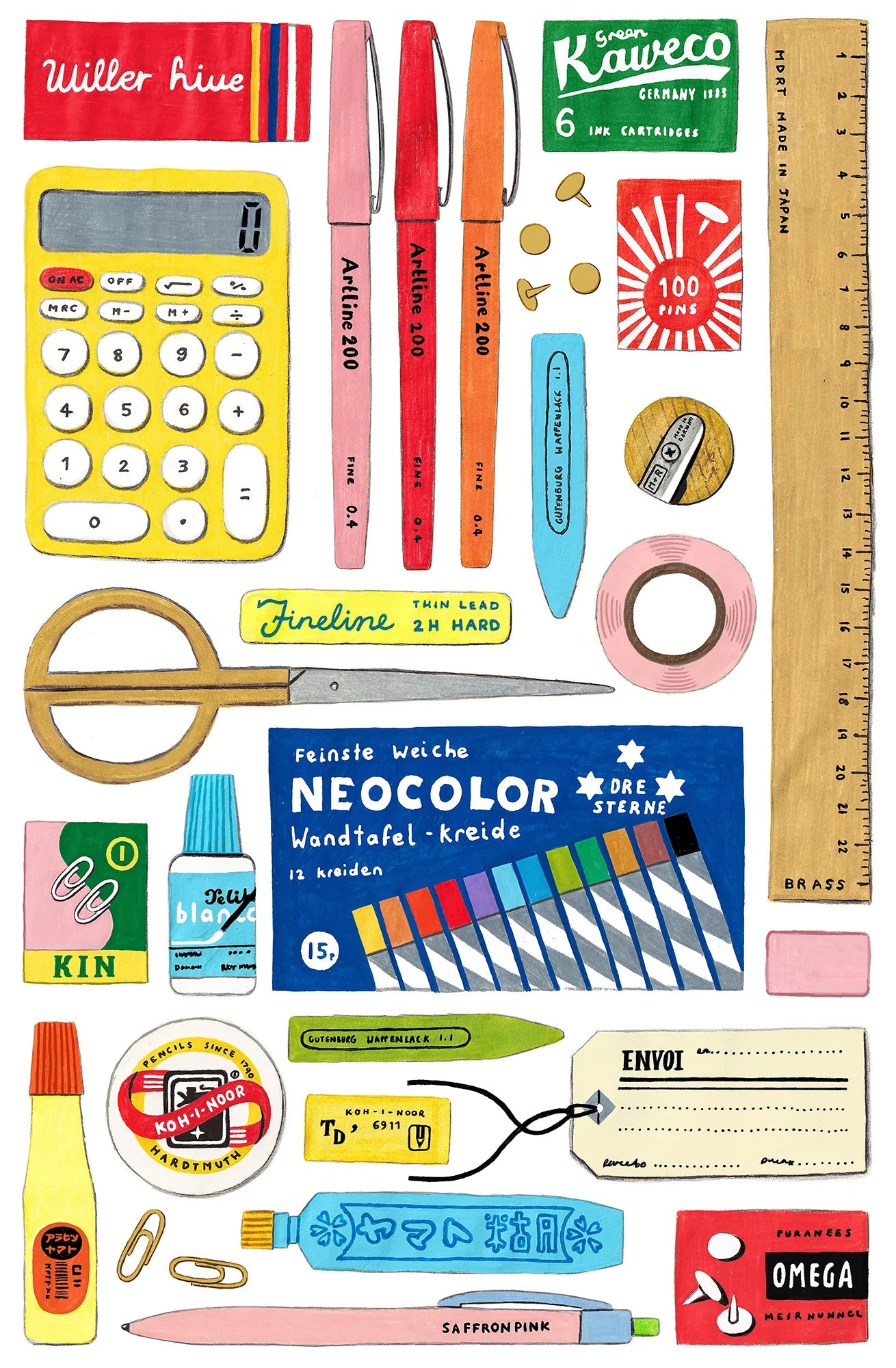 1,000 piece Stationery puzzle featuring a fun illustration of iconic stationery by Holly Maguire.