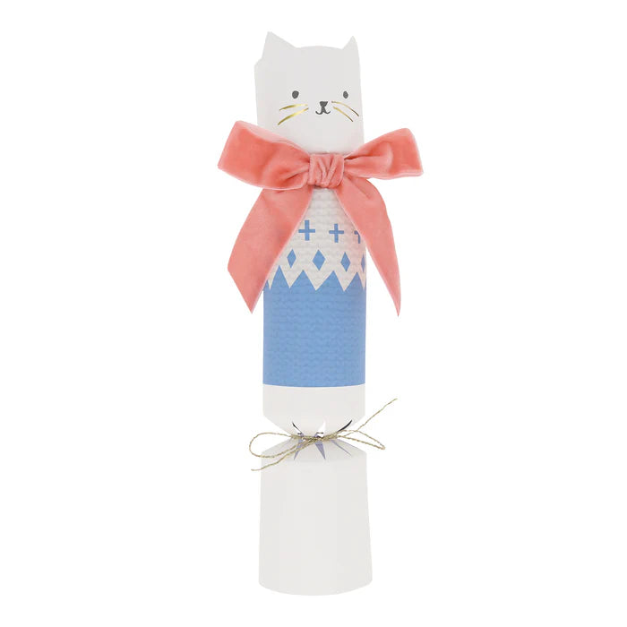 • 6 Cat crackers with dusty pink, red and light blue fair isle knitwear details